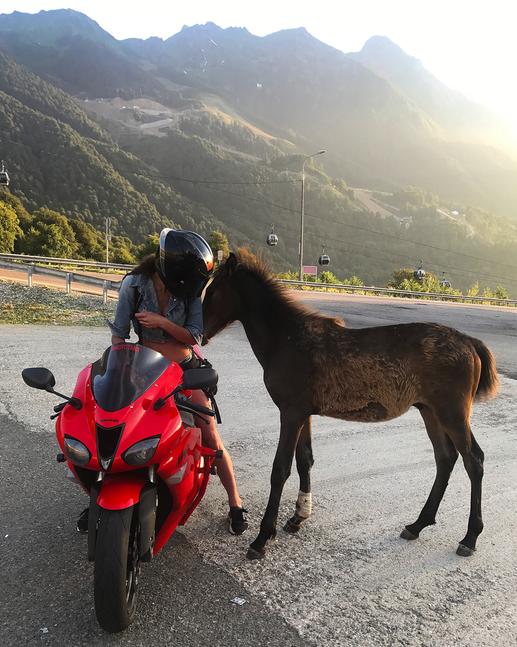 проехав две трети пути, я встретила знакомого из мск (мир, ну ооочень тесен). с его слов-«подъезжаю к заправке. вижу красный мот. думаю: -#мотоТаня, что ли? да не, бред. что она делает за тысячу с лишним км от москвы?» когда я вышла из кафе, то услышала крик: -«да ладно. это ты?». так же, ближе к горам, я нагнала колонну ребят из bizzon moscow. они тоже ехали из мск на море, но ехали уже третий день (спокойная и размеренная езда. норм. хотя и я не топила).